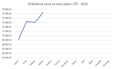 Cena na trhu komodity jako je zlato, reaguje na poptávku a nabídku, kterou ovlivňují i události ve světě. Mezi základní faktory, které ovlivňují vývoj ceny zlata na burze, patří kurz amerického dolaru, inflace a výše úrokových sazeb. Pokud se budeme bavit o americkém dolaru, zde při znehodnocení měny dochází k tomu, že cena zlata stoupá. V případě zvyšující se inflace je vyvolána vyšší poptávka po tomto cenném kovu a tím pádem dochází také ke zvýšení ceny. Jako poslední je výše úrokových sazeb, kde při poklesu úrokových sazeb cena zlata roste. Měsíční vývoj ceny zlata ve světě Nyní se podívejme na vývoj ceny zlata v průběhu dubna. Na konci března se trojská unce obchodovala za 3 118 dolarů. Na začátku dubna cena klesla na 2 983 dolarů, avšak v dalších týdnech postupně rostla. Zlato opět překonalo psychologickou hranici 3 000 dolarů a v posledním dubnovém týdnu dosáhla cena až 3 344 USD za unci. Duben 2025 byl pro trh se zlatem obdobím výrazné volatility a historických milníků. Cena zlata dosáhla nových rekordních hodnot, přičemž hlavními faktory ovlivňujícími tento vývoj byly geopolitická nejistota, měnová politika a zvýšená poptávka po bezpečných aktivech. Na začátku dubna se cena zlata pohybovala kolem 3 114 USD za trojskou unci. V následujících dnech došlo k mírnému poklesu na 3 106 USD, což bylo způsobeno očekáváním oznámení nových celních opatření ze strany prezidenta Trumpa. Investoři vyčkávali na další vývoj, což vedlo k dočasnému oslabení ceny zlata. V polovině dubna cena zlata opět rostla a 22. dubna dosáhla rekordní hodnoty 3 500,05 USD za unci. Tento nárůst byl podpořen zvýšenou poptávkou investorů hledajících bezpečné útočiště v době geopolitických nejistot a přetrvávajících ekonomických obav. K nervozitě na trzích přispěly také politické výroky prezidenta Donalda Trumpa, který naznačil možnost odvolání předsedy Fedu Jeroma Powella. Trhy začaly toto riziko zohledňovat a zlato tak těžilo i z nejistoty ohledně budoucí měnové politiky Spojených států. Nicméně, ke konci měsíce došlo k mírnému poklesu ceny zlata, která se snížila na přibližně 3 211 USD za unci. Tento pokles byl ovlivněn pozitivními ekonomickými zprávami z USA a dočasným snížením napětí v mezinárodních obchodních vztazích. Analytici z Goldman Sachs předpovídají, že cena zlata bude i nadále růst, s možným dosažením 3 700 USD do konce roku 2025 a až 4 000 USD do poloviny roku 2026. Tento optimismus je podpořen pokračující poptávkou centrálních bank a obavami z recese. Celkově byl duben 2025 pro zlato obdobím výrazných cenových pohybů, kdy cena dosáhla nových maxim, ale také čelila krátkodobým korekcím v reakci na měnící se globální ekonomické a politické podmínky. | Datum | 7.4.2025 | 14.4.2025 | 23.4.2025 | 28.4.2025 | | Cena za unci (USD) | 2 983 $ | 3 211 $ | 3 288 $ | 3 344 $ |  Graf vývoje ceny zlata ve světě za duben 2025 Autor: Finparáda.cz = Pro zvětšení klikněte na obrázek = Jak reagoval tuzemský trh prodejců zlata Na vývoj zlata reagovaly také vybrané tuzemské společnosti, konkrétně Česká mincovna, Česká spořitelna, Golden Gate, ZLAŤÁKY a Zlaté mince. U všech společností jsme mohli zaznamenat podobný vývoj a reakci na změny. Na konci března činila průměrná cena za unci zlata 75 653 Kč. Na začátku dubna byla průměrná částka u tuzemských prodejců výrazně nižší – 73 270 Kč. Ve druhém týdnu cena vzrostla na 74 794 Kč, a v tom následujícím se vyšplhala až na 77 021 Kč. V posledním dubnovém týdnu však cena opět mírně klesla a unce zlata se prodávala v průměru za 76 107 Kč. Srovnání zlatých investičních slitků na Finparádě můžete nalézt zde. | Společnosti | 7.4.2025 | 14.4.2025 | 23.4.2025 | 28.4.2025 | | Česká mincovna | 73 399 Kč | 75 032 Kč | 77 229 Kč | 76 178 Kč | | Česká spořitelna | 74 449 Kč | 76 053 Kč | 78 237 Kč | 77 009 Kč | | Golden Gate | 74 650 Kč | 76 496 Kč | 78 737 Kč | 77 677 Kč | | ZLAŤÁKY | 71 852 Kč | 73 729 Kč | 75 930 Kč | 75 700 Kč | | Zlaté mince | 71 999 Kč | 72 662 Kč | 74 974 Kč | 73 973 Kč | | Průměrná cena za unci | 73 270 Kč | 74 794 Kč | 77 021 Kč | 76 107 Kč |  Vývoj ceny zlata na tuzemském trhu za duben 2025 Autor: Finparáda.cz = Pro zvětšení klikněte na obrázek = | Datum | Listopad | Prosinec | Leden | Únor | Březen | Duben | | Zlatoindex | 66 414 Kč | 66 536 Kč | 69 048 Kč | 73 291 Kč | 73 047 Kč | 75 298 Kč | *Zlatoindex - Průměrná cena za unci zlata u tuzemských obchodníků v daném kalendářním měsíci  Zlatoindex - Duben 2025 Autor: Finparáda.cz = Pro zvětšení klikněte na obrázek = | Žebříček podílových fondů |  | | Kalkulačka zlata a stříbra |  | | Sjednání investic |  |