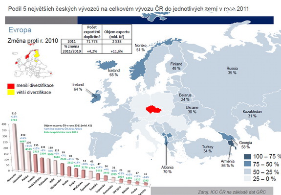 meziročního růstu exportu (rok 2010 a rok 2011) a