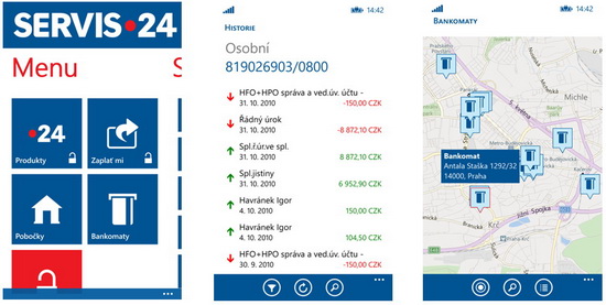 Česká spořitelna se tak zařadila po bok dalším bankám, které již bankovnictví pro chytré telefony se systémem Mobile Phone nabízejí. Mobilní bankovnictví pod Windows Phone nabízejí ZUNO Bank, Komerční banka, UniCredit Bank, ČSOB, Fio banka a nově i Česká spořitelna. „Mít banku v mobilu je dnes již běžné. Klienti s platformami iOS nebo Andriod ji v Zuno využívají skoro dva roky. Považovali jsme však za nezbytné obsáhnout dnes všechny relevantní mobilní platformy a zajistit tak uživatelům Windows Phone komfort při kontaktu s námi. Poptávka po této aplikaci byla opravdu veliká, a proto jsme rádi, že ji naši zákazníci už můžou plnohodnotně využívat," říká Peter Lakata, ředitel online banky ZUNO Česká republika. Mobilní banku u České spořitelny dosud aktivně využívá 144 tisíc klientů, kteří přes ni podle banky v letošním roce provedli 1,7 milionu transakcí v celkovém objemu 6,5 mld. Kč. „Mobilní banka se ukázala i jako dobrý prodejní nástroj, v létě jsme našim klientům nově nabídli možnost sjednat si přes ni i úvěr a kontokorent, v říjnu pak kreditní kartu. Této nabídky využilo už více než tisíc klientů, kteří si sjednali úvěrové produkty v celkovém objemu přesahujícím 21 mil. Kč,” říká David Lorenc, ředitel přímého bankovnictví České spořitelny. Nová Mobilní banka pro Windows Phone umožňuje zadávání jednorázových platebních příkazů několika způsoby, sledování transakční historie u běžných a karetních účtů včetně detailů transakcí. Můžete s ní vyhledávat i pobočky a bankomaty ČS. V případě zájmu klientů je prý Česká spořitelna připravena aplikaci v příštím roce postupně rozšiřovat i o další funkce. „Těší nás, že uživatelé Windows Phone zařízení, kteří jsou zároveň klienty České spořitelny, mohou nově obhospodařovat své finance ze svého chytrého telefonu. Věříme, že tato aplikace, která je nyní zdarma ke stažení v obchodě Windows Phone Store, přispěje k jejich spokojenosti s naší platformou,” upřesňuje Milan Hrabovský, ředitel divize vývoje ve společnosti Microsoft.  Mobilní bankovnictví ČS pod Windows Phone Autor: Česká spořitelna Pro zvětšení klikněte na obrázek. @@Adverts_middle@@ Aplikaci SERVIS 24 Mobilní banka mohou využívat všichni klienti, kteří mají aktivované internetové bankovnictví České spořitelny. Zdarma si ji mohou stáhnout a nainstalovat prostřednictvím obchodu s aplikacemi Windows Phone Store. Její bezpečnost je podle banky zajištěna pomocí několika vzájemně se doplňujících komponentů – klientského čísla, hesla, bezpečně zašifrované komunikace mezi mobilním zařízením a bankou a také nastavením denních a měsíčních limitů pro bankovní operace.