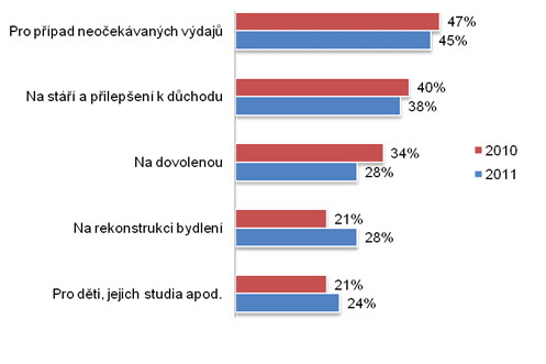 respondentů) a hned v závěsu spoření na důchod (38 %). Na