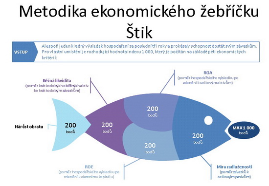 Novým generálním partnerem žebříčku je společnost Vodafone „Požadavky na mobilního operátora se samozřejmě mění stejně rychle, jak rychle se vyvíjí technologie. Zdaleka už nejde jen o hlasové služby. Dnes klienti chtějí řešení, které pokryje všechny IT a telekomunikační požadavky společnosti. Požadují jednotný balík služeb a jejich co nejpohodlnější a nejjednodušší správu. Neustále rostoucí zájem sledujeme u mobilního datového připojení, které je třeba pro zaměstnance na cestách úplnou nezbytností. Rozhodli jsme se podpořit Štiky i proto, že se nám líbí koncept hodnocení stability a růstu, namísto tradičních žebříčků hodnotících pouze obrat či počet zaměstnanců,“ říká Milena Linhartová, ředitelka prodeje firemním zákazníkům ve společnosti Vodafone, který je generálním partnerem Štik českého byznysu. Chcete podnikatelské konto? mBank mKonto Business  Štiky českého byznysu 2015 - Co letos udělají české firmy pro zvýšení své konkurenceschopnosti? Autor: PWC Správní lidé a správné technologie rozhodnou Tématem letošního roku bude podle zástupce poradenské společnosti PwC ČR, která je hlavním partnerem Štik českého byznysu, Zenon Folwarczneho, práce s lidmi a technologiemi. Nedostatek zaměstnanců s vhodnou kvalifikací bude od firem vyžadovat, aby správně motivovaly své klíčové lidi a dokázaly si je udržet. Rozjíždějící se ekonomika prý také nabízí zajímavé příležitosti investování do nových technologií, znalostí či dovedností.  Štiky českého byznysu 2015 - Proč české firmy investují do digitálních technologií? Autor: PWC Petr Laštovka, partner EMUN PARTNERS, tvrdí, že úspěšný vývoj firem je určitě do jisté míry podpořen technologickým rozvojem. Ale hlavním klíčem k úspěchu je vždy osobní invence, která předchází té technologické, zejména vizionářství majitele či ředitelů společností.  Metodika ekonomického žebříčku Štiky českého byznysu Autor: Coface „Projekt Štiky je jedinečný v tom, že hodnotí firmy podle jejich finanční stability a růstu, což jsou podle mne jedny z nedůležitějších předpokladů udržitelného rozvoje společností. Proto jsme se rozhodli stát se partnerem této soutěže a přeji všem štikám, aby i nadále byli těmi, kdo budou čeřit vodu v českém podnikatelském rybníce,“ říká Vít Návrat, Managing Director DHL Freight Central Eastern Europe. Kritéria soutěže Žebříček Štik českého byznysu zdůrazňuje pouze čistě ekonomické výsledky firem a kombinuje pohled růstový s pohledem finanční stability, a vytváří tudíž prostředí pro objektivní srovnání úspěchů firem napříč odvětvími. Hodnocené období zahrnuje poslední tři roky (aktuálně tedy období let 2012–2014), přičemž jednotlivé roky mají rozdílnou váhu: nejaktuálnější rok má váhu nejvyšší. Obrat musí být vyšší než 10 milionů eur ročně v každém hodnoceném roce. Z hodnocení vyřazujeme firmy, na něž je aktuálně podán návrh na insolvenci a takové, u kterých jsme zjistili problémy se solventností. V ekonomickém žebříčku také nejsou hodnoceny firmy s některými specifickými formami podnikání (finanční společnosti, zbrojovky a firmy zabývající se výrobou a distribucí paliv, sázkové kanceláře a firmy zabývající se hazardem). Velikost podniku nehraje roli. Soutěžní kategorie 12. ročníku: Štiky českého byznysu v kategorii celorepublikových výsledků - Oceněna je jedna společnost z celostátního hodnocení