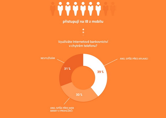 - 39 % lidí využívá pro přístup ke svému bankovnímu účtu aplikaci v mobilu nebo v tabletu