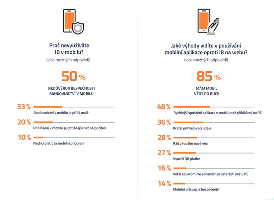 - 30 % lidí, kteří nevyužívají mobilní bankovnictví, považují za hlavní nevýhodu malou obrazovku mobilního telefonu pro účely správy svého účtu