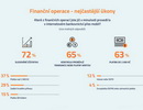 - nejčastěji lidé v mobilním bankovnictví sledují zůstatek účtu (72 %), kontrolují proběhlé transakce (65 %) a provádějí platby do 2 tisíc korun (63 %)