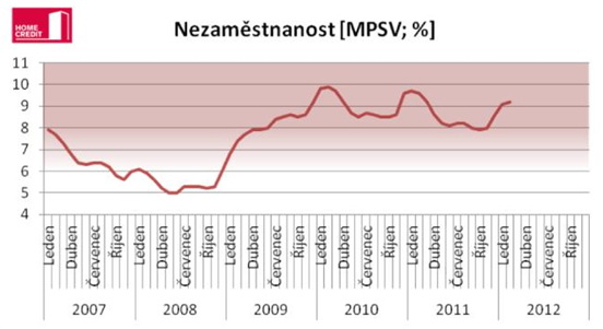 lednu na 9,1 % bylo v únoru bez práce 9,2 %