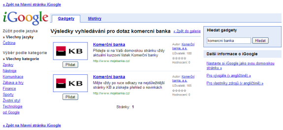 Zajímavost na stránkách KB - odkaz na iGoogle