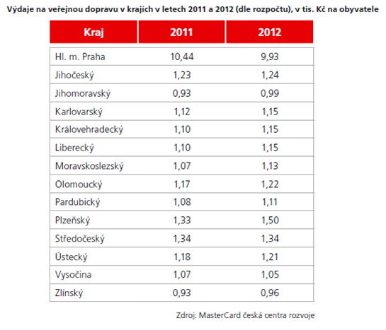 Výdaje na veřejnou dopravu jsou v kraji druhé