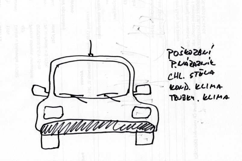 Kresba poškozeného automobilu Ford Fiesta - klientka Generali pojišťovny