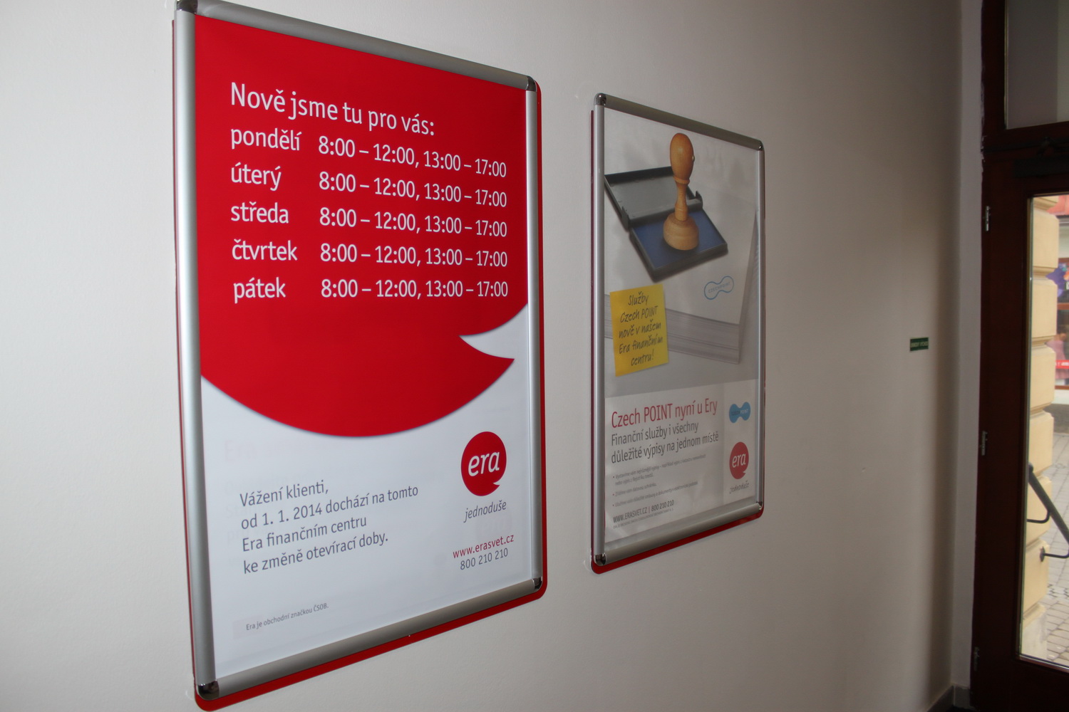 Předávání ocenění Scottova pobočka Era Finančnímu centru v Šumperku 12. února 2014. Na snímku Era Finanční centrum Šumperk, vstupní chodba.