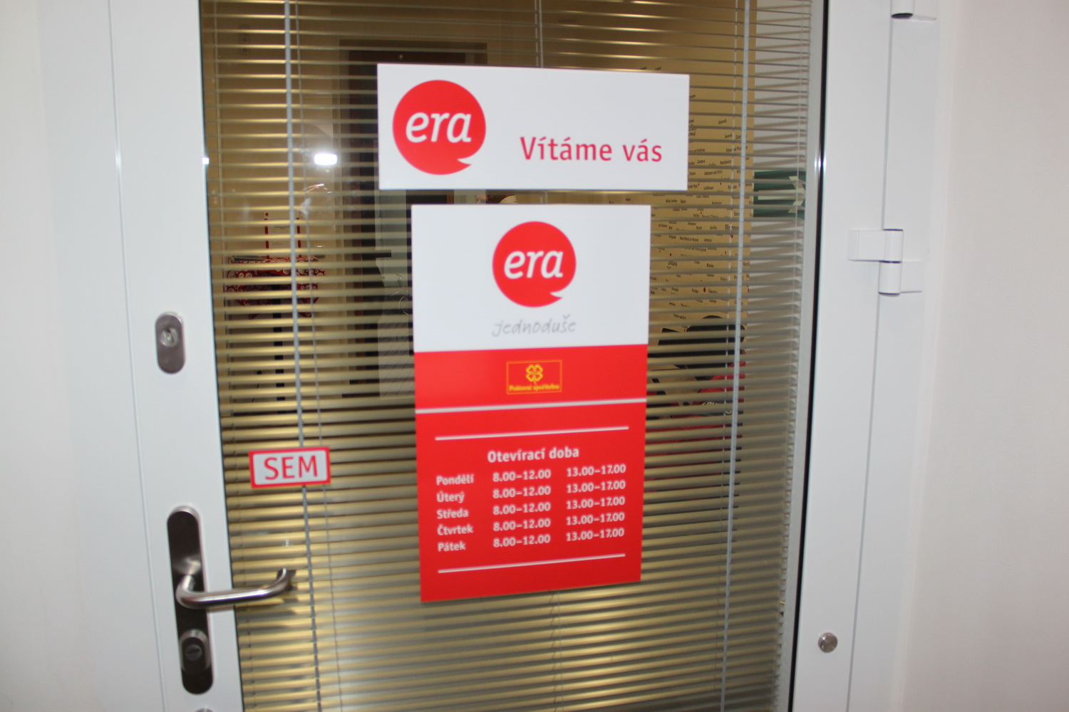 Předávání ocenění Scottova pobočka Era Finančnímu centru v Šumperku 12. února 2014. Na snímku Era Finanční centrum Šumperk, vstupní chodba.