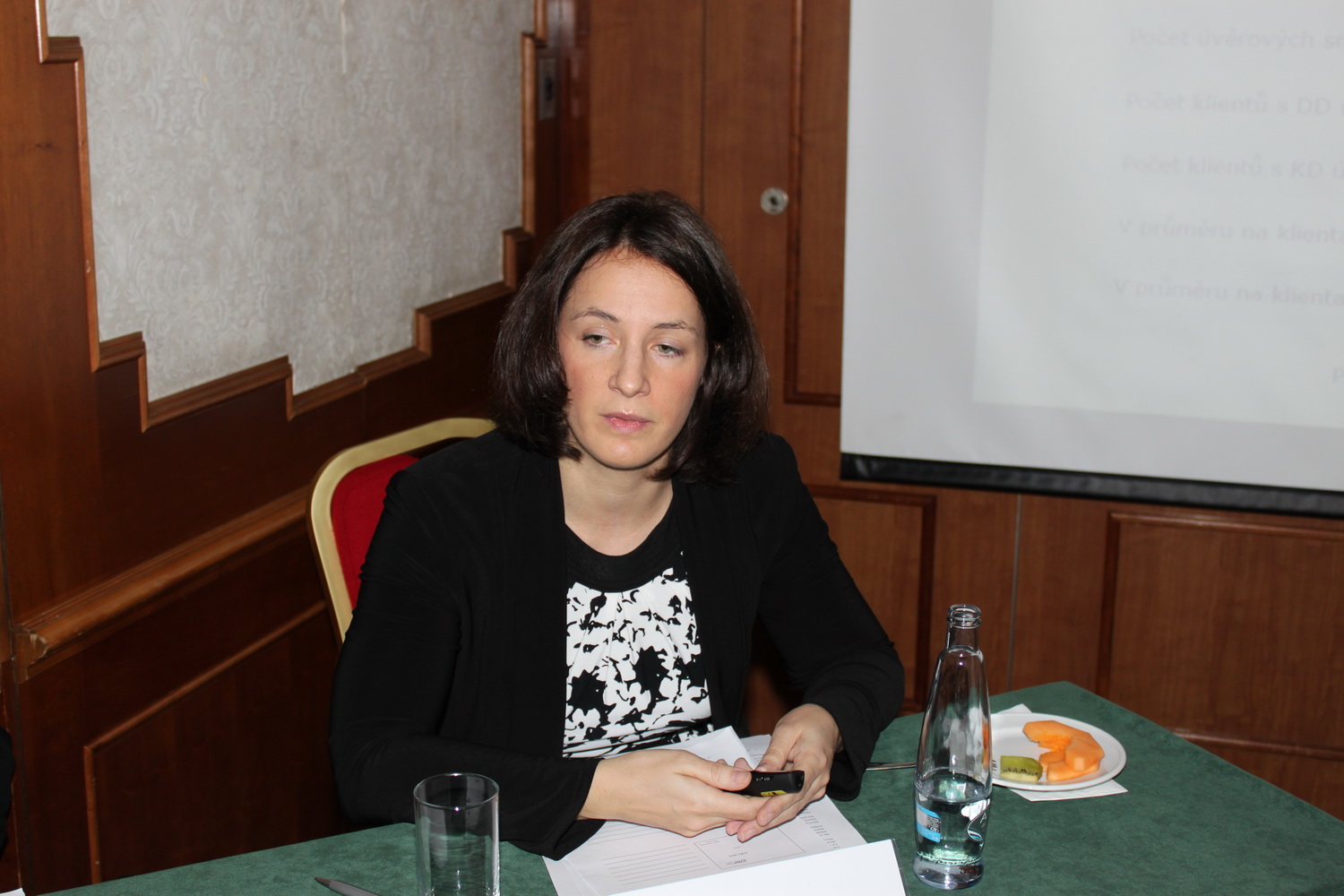 Úvěry v roce 2013 - Tisková konference Bankovního a Nebankovního registru klientských informací konaná v Praze 3. dubna 2014. Na snímku Zuzana Pečená, výkonná ředitelka společnosti CBCB – Czech Banking Credit Bureau, a. s., která provozuje Bankovní registr klientských informací.