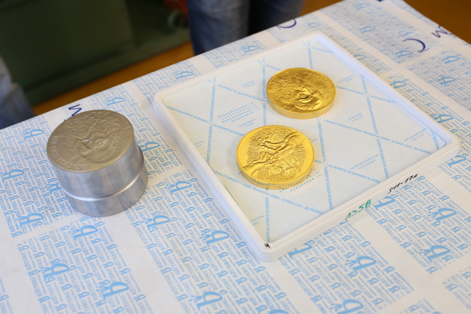 Ražba zlaté medaile s portrétem J.A.Komenského. Na snímku razidlo.
