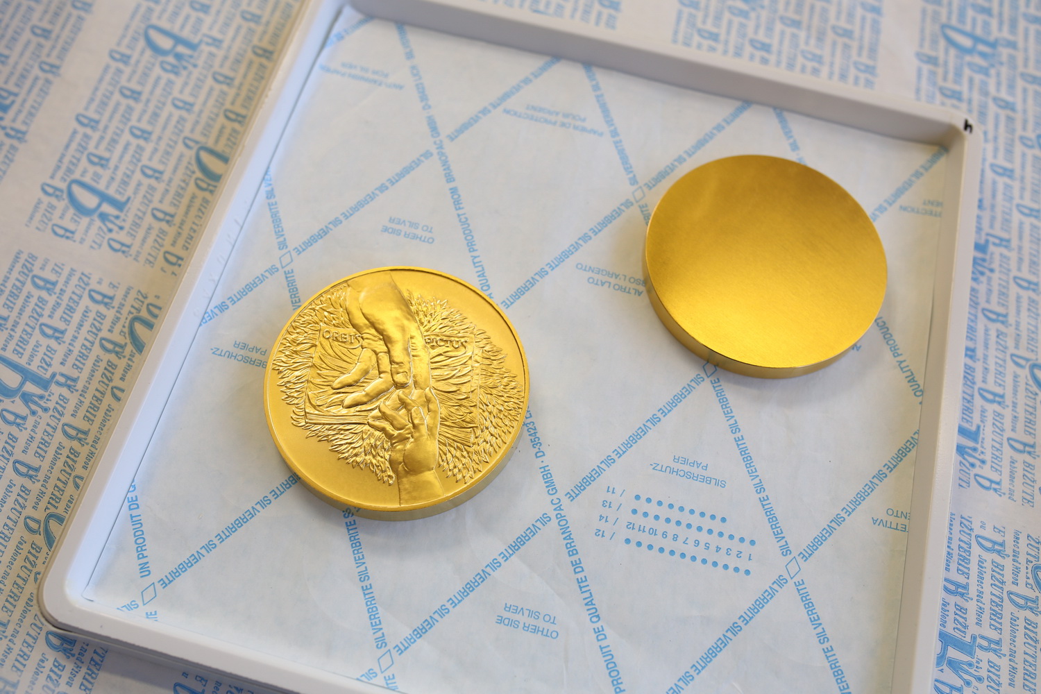 Ražba zlaté medaile s portrétem J.A.Komenského