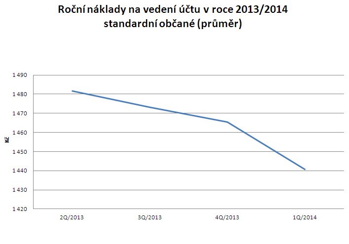 Vývoj průměrných ročních nákladů na využívání běžného účtu v českých bankách po čtvrtletích - standardní klienti