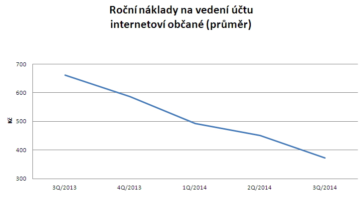 Průměrné roční náklady za využívání běžného účtu v bance v ČR ke konci 3. čtvrtletí 2014 - internetový modelový klient