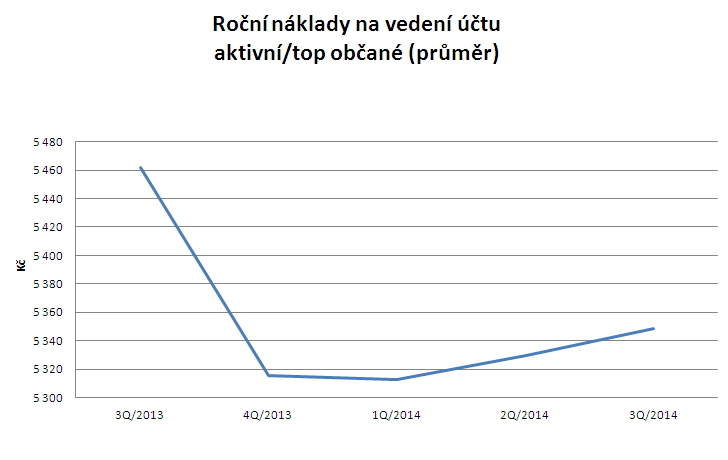 Průměrné roční náklady za využívání běžného účtu v bance v ČR ke konci 3. čtvrtletí 2014 - náročný / aktivní modelový klient