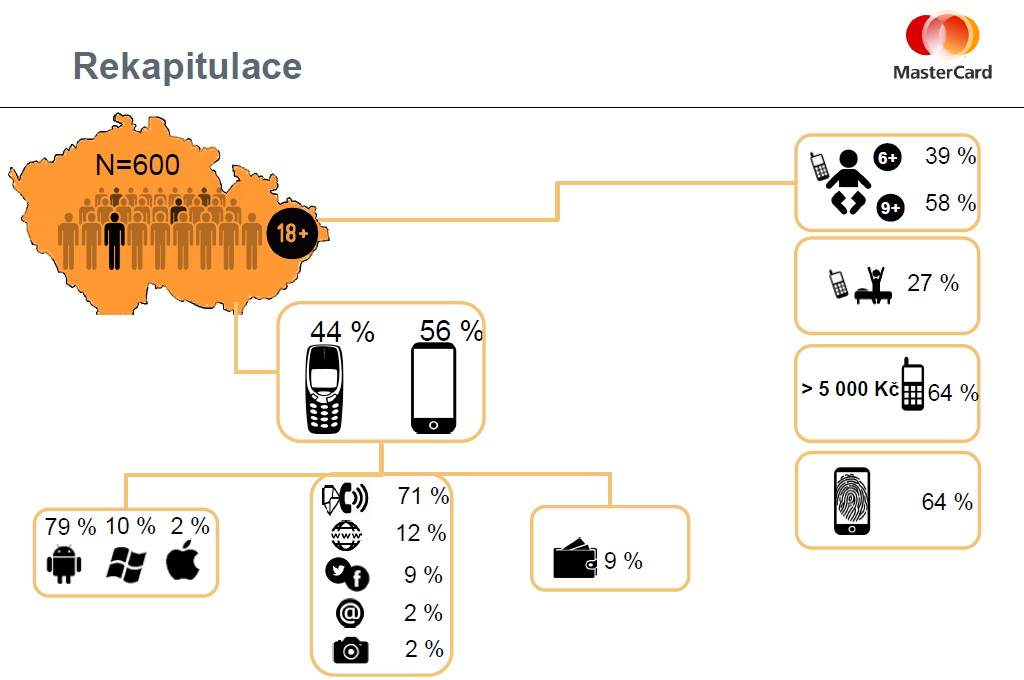 Rekapitulace zjištění z průzkumu MasterCard k používání mobilů a platebním metodám