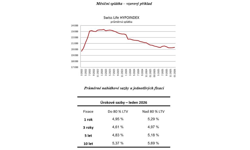 Graf vývoje průměrné splátky v lednu 2026