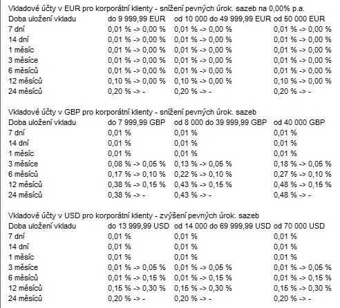 Vkladové účty v Kč pro korporátní klienty na 24, 36 a 48 měsíců byly odstraněny ke 14.11.2016 z přehledu úrokových sazeb.