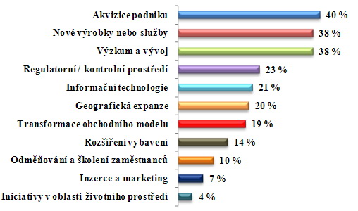 „Farmaceutický sektor se obecně začíná orientovat na strategické akvizice, výrobu nových výrobků, představení moderních služeb, ale i na výzkum a vývoj,“ potvrzuje Zeno Veselík, Director, KPMG Česká republika, a pokračuje: „Na druhou stranu není žádným tajemstvím, že farmaceutické firmy zasáhne zvyšující se tlak na regulaci a legislativu, který v konečném důsledku může brzdit jejich další růst.“ Investiční priority Většina respondentů v průzkumu uvedla, že se chce prioritně zaměřit zejména na expanzi na zahraniční trhy. K tomu jim mají pomoci především fúze a akvizice. Nábor nových zaměstnanců bude naopak spíše stagnovat.