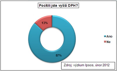 Z průzkumu, který pro společnost Partners realizovala agentura Ipsos, vyplývá, že většina Čechů (přes 87 %) již zvýšení sazby DPH pocítila na svých peněženkách. Mezi lidmi v produktivním věku (35-45 let) dokonce jejich podíl přesahuje 90 %. Již po dvou měsících od zavedení vyšší sazby lidé nejvíce zaznamenali nárůst cen u potravin (86 %), pohonných hmot (56 %), léků a zdravotnických pomůcek (35%). V menší míře pak u vodného a stočného (22 %), tepla (21 %) a u městské dopravy (19 %). O něco málo citlivější na nárůst DPH jsou ženy.