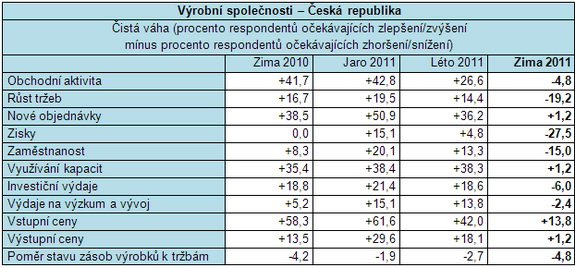Výrobní firmy i poskytovatelé služeb vidí situaci nejčerněji od roku 2009, mezi největší pesimisty dlouhodobě patří Češi.