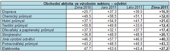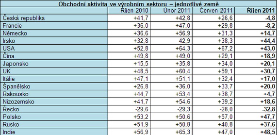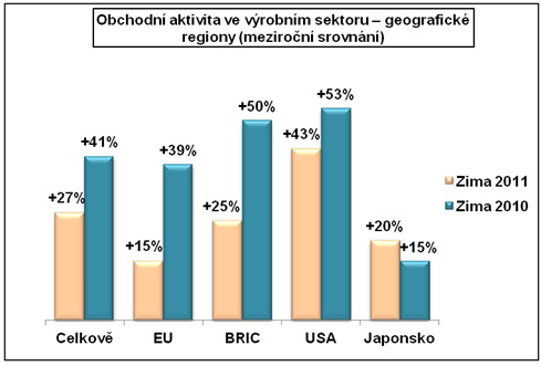 V celosvětovém měřítku důvěra výrazněji poklesla ve výrobním sektoru – na 27,3 bodu z 45,5 bodu v létě 2011 a 52,8 bodu na jaře téhož roku. Oslabil ale i sektor služeb. V něm očekávání obchodní aktivity dosahují výsledku 33,2 bodu (oproti letním 38,2 bodu a jarním 46,5 bodu).