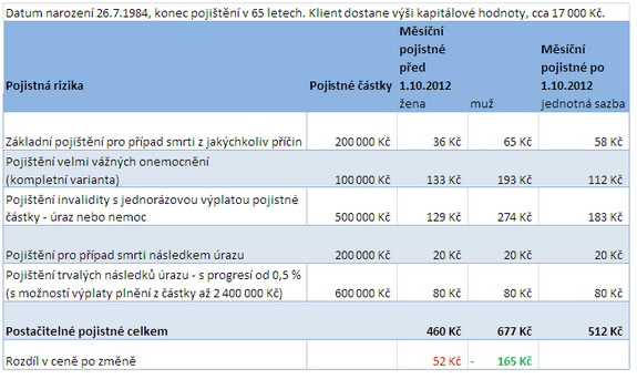 Pojišťovna České spořitelny přichází od 1. října 2012 na trh s jednotnými sazbami pojistného pro muže a ženy. K témuž datu také představuje produktové novinky. Klientům nabídne dvojnásobné plnění při dopravní nehodě, dvě varianty pojištění velmi vážných onemocnění a prodlouží maximální dobu plnění v pojištění denního odškodného u dětí na 365 dnů.