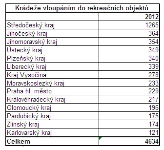 Své o tom vědí zvláště majitelé chat ve Středočeském kraji, které jsou vykrádány zdaleka nejčastěji, ale jisti si nemohou být ani chataři z jiných částí země. Ze 4 634 krádeží vloupáním do chat, které se staly během loňského roku, jich na Středočeský kraj připadala zhruba čtvrtina (1265). Nejméně se vykrádaly chaty v Karlovarském kraji.