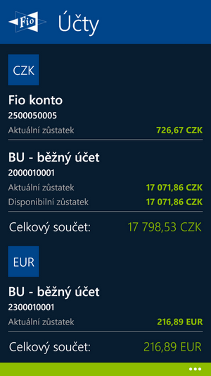 "Windows Phone je rozvíjející se platforma, jejíž uživatelé stále častěji poptávají služby Fio banky. Proto jsme se rozhodli reagovat na její nástup a zprovoznit pro ni bankovní aplikaci. Věříme, že tím její fanoušky potěšíme a k bezplatnému vedení účtů přidáme další kvalitní produkt jako argument pro aktivní využívání našich služeb,“ říká k tomu Ján Franek, tiskový mluvčí Fio banky.et na účty, jejich zůstatky, výpisy a historii, posílat platby včetně QR plateb, spravovat platební karty, komunikovat s bankou nebo měnit nastavení aplikace pro pohodlnější ovládání. Přístup do zabezpečené části Smartbankingu lze jednoduše nastavit v internetovém bankovnictví.