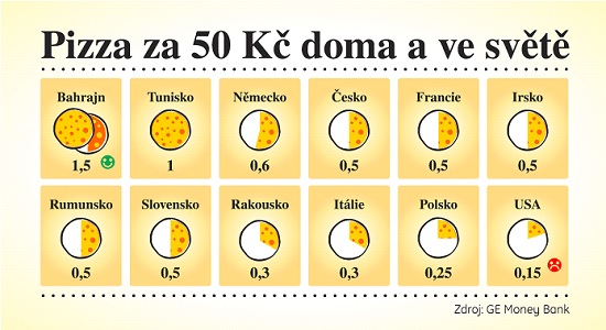 GE Money Bank zjišťovala, co si koupíte za 50 Kč doma i ve světě. V Čechách si za ně dáte půlku pizzy, zatímco v Bahrajnu pizzu a půl