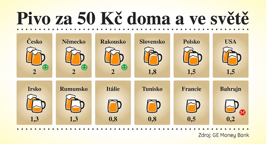 Padesát korun se někomu může zdát málo, ale stačí se podívat kolem a zjistíte, že se za to dá pořídit spousta věcí. Sportovci si mohou například zacvičit po ránu hodinku v posilovně, pohodáři si místo toho dopřejí ranní kávičku a koláč. Ale možná vás bude inspirovat průzkum GE Money Bank, který se podíval na ceny několika druhů zboží, které se prodávají téměř na celém světě. Průzkum počítal s kurzem 24,29 Kč za USD a 27,64 Kč za euro a překvapivě ukázal, že v Česku na tom nejsme s padesátkou v kapse tak špatně. Tak například pizza Margherita přijde zhruba na 100 Kč, takže za odměnu z účtu Genius bene+ byste si dali půlku. Stejné by to bylo v Německu a Irsku, ale v Rakousku a Itálii byste dostali pizzy jen třetinu, v sousedním Polsku jen čtvrtku a v USA ani to ne, jen 15 %. Zato v Tunisku byste měli Margheritu celou a v Bahrajnu dokonce jednu a půl.